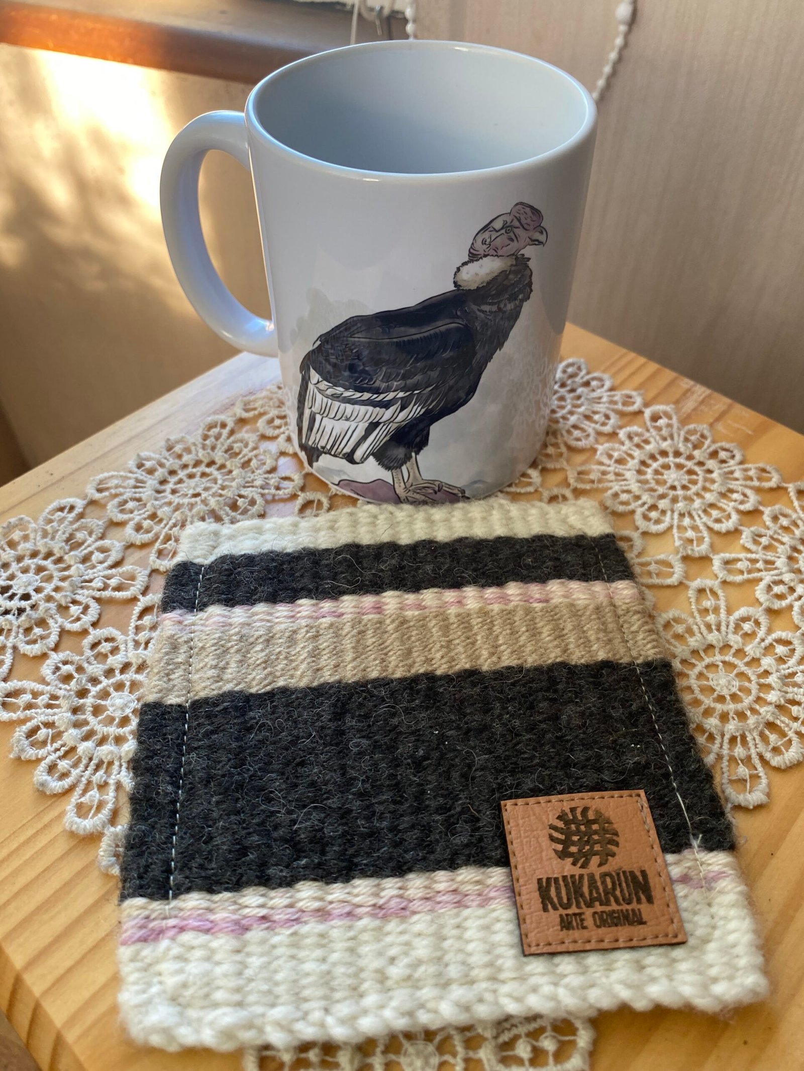 Bello Tazón Cóndor con posajarro (12,5 x 12,5) tejido a telar